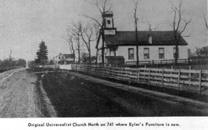 The First Universalist Church of Springboro was built in 1841, just north of Rte 73, on land provided by the Gregg family, who were founders of the Springboro church along with other Springboro pioneers. The church building was replaced in 1905, with the “old stone church” at 300 S. Main St. that continues in use by another congregation.